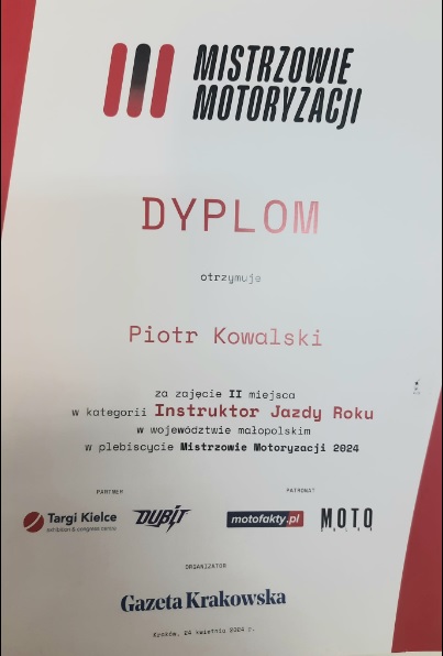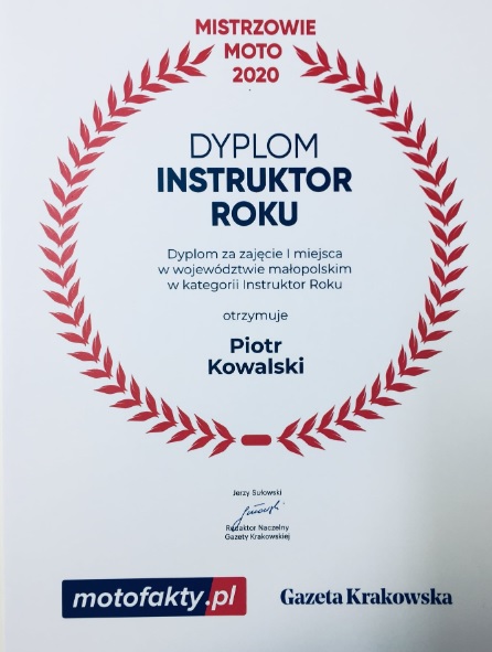 Dzięki Wam i Waszym głosom, drodzy klienci, wygraliśmy w dwóch województwach I miejsce w kategorii powiatu: Instruktor Jazdy 2019 i 2020, I miejsce w kategorii powiatu: Instruktor Jazdy 2019, 2020, II miejsce w kategorii: Szkoła jazdy Roku w Krakowie 2019 oraz 2020.