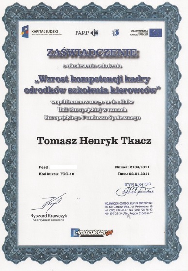 Jesteśmy również wpisani do rejestru Instytucji Szkoleniowych, tak samo istnieje możliwość uzyskania dofinansowania na kursy prawa jazdy przez osoby niepełnosprawne.