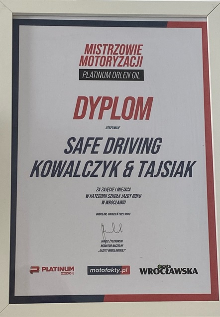 Szkoła jazdy roku według rankingu Mistrzowie Motoryzacji pod patronatem Orlen Platinum Oil.